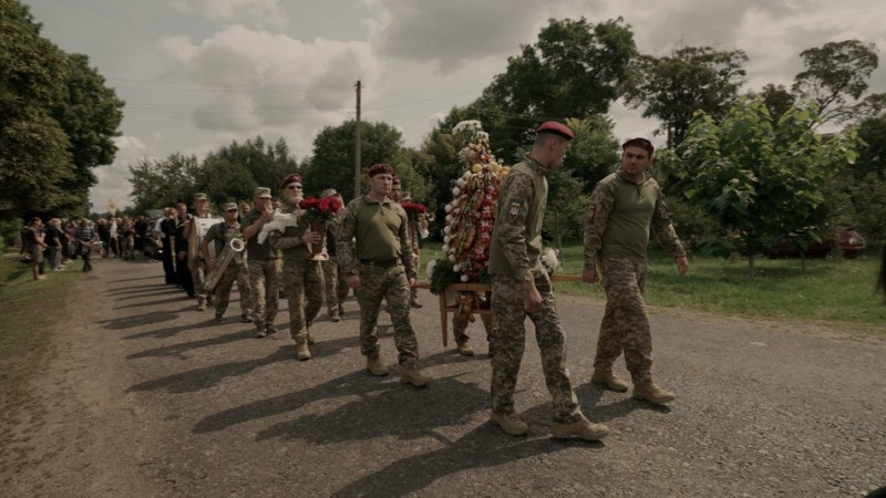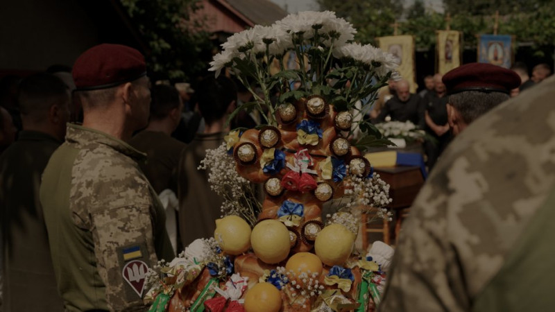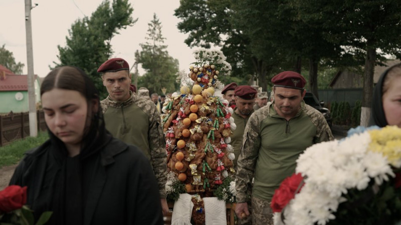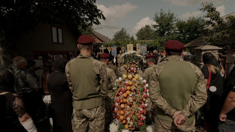 Поминальне деревце на похороні військового у селі Петричанка на Буковині, 2025 рік. Суспільне Чернівці