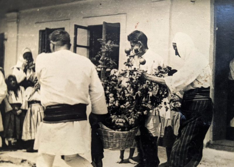 У цій традиції є українські та румунські взаємовпливи. Майстриня починає споряджати деревце. Ставить кожну фігуру і коментує, бо кожна має свою форму та назву.