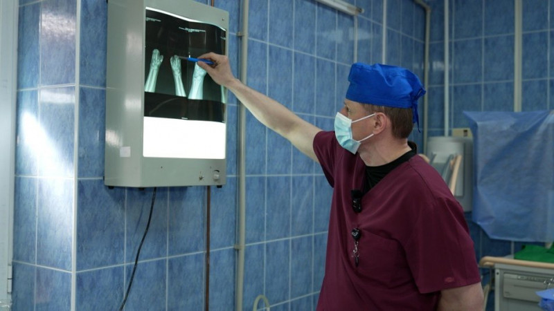 Лікар показує рентген рук бійця. Суспільне Вінниця