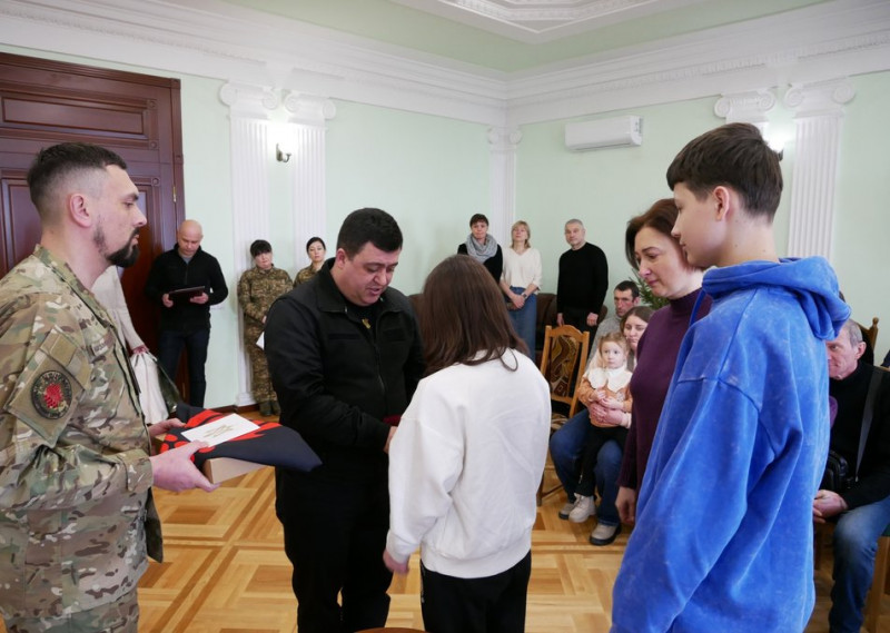 Родині загиблого бійця передають його нагороду. Вінницька обласна військова адміністрація