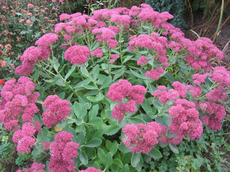 "В очитка видного — великі рожеві суцвіття. Я ніколи їх не зрізаю і вони гарно тримаються взимку. Так квітник залишається декоративним".