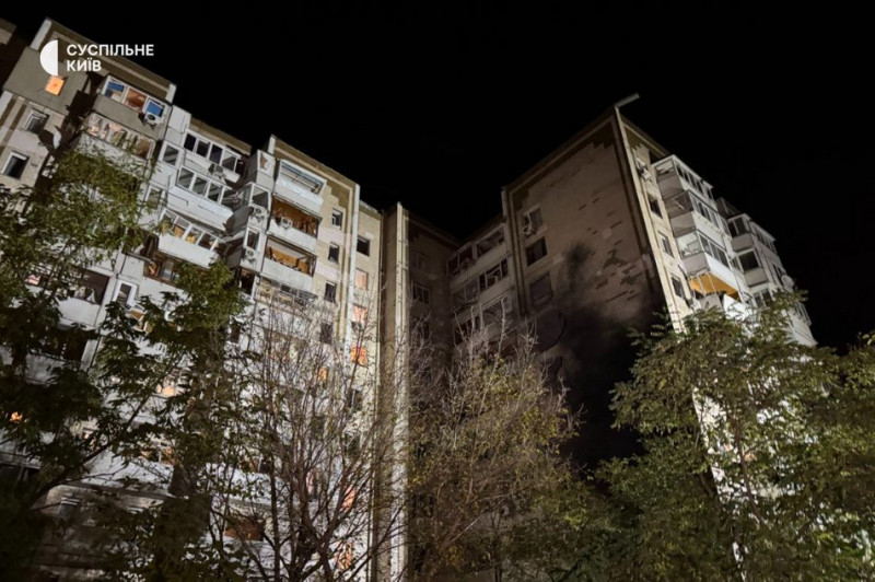 Пошкоджений будинок внаслідок дронової атаки у Деснянському районі. Київ, 26 жовтня 2025 року. Суспільне Новини/Дарина Коломієць
