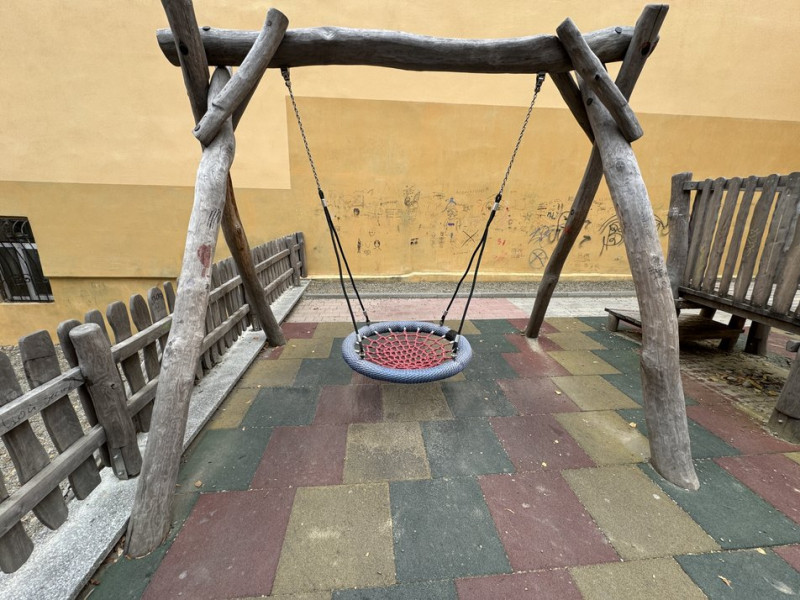 Одна з гойдалок дитячого майданчика на вулиці Котляревського, 20. Суспільне Чернівці