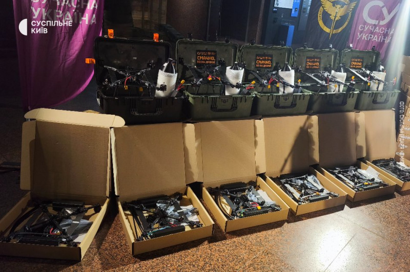 Волонтери благодійного фонду «Сучасна Україна» передали ГУР МО другу частину зі 100 дронів, Київ, 20 грудня 2025 року. Суспільне Новини/Дар’я Нематіан Золбін