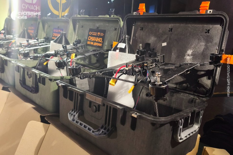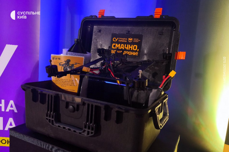 Такий вигляд має бокс із FPV-дроном, який БФ «Сучасна Україна» передали ГУР МО, Київ, 20 грудня 2025 року. Суспільне Новини/Дар’я Нематіан Золбін