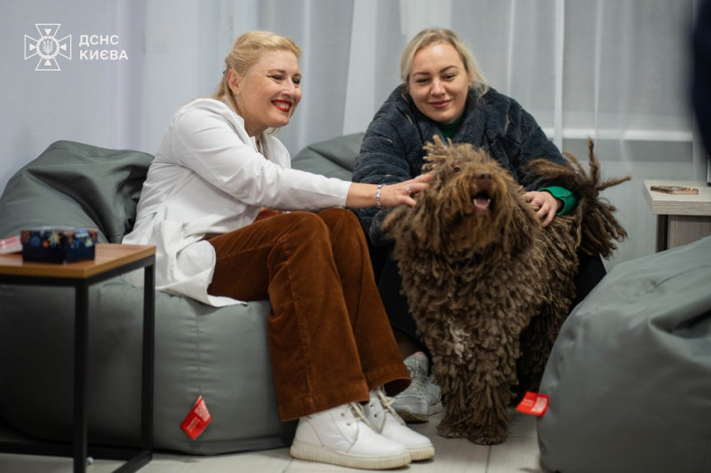У ДСНС звернули увагу, що це гра з твариною, яка передбачає розслаблення, налагодження емоційного зв'язку. Такі заняття мають знизити рівень тривоги та повернути емоційну рівновагу.