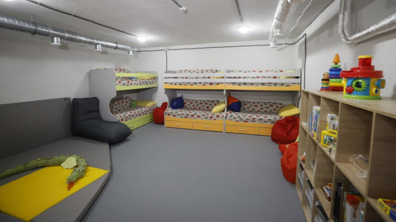 У Києві у соціальному центрі "Особлива дитина" облаштували найпростіше укриття, яке сполучене коридором завдовжки майже 1 км із головним укриттям Київської міської дитячої клінічної лікарні №1.