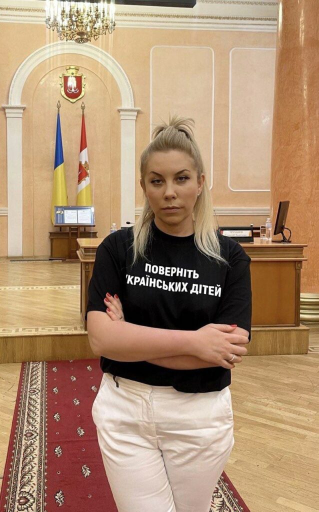 Вона звернула увагу депутатів Одеської міськради на надзвичайно важливе питання — викрадення та примусове вивезення російськими солдатами українських дітей, під час війни в Україні. «З початку повномасштабного вторгнення армія рашистів вбила в Україні понад 469 дітей, ще 948 дітям завдала поранень. Наразі точно відомо про 19 390 вивезених з окупованих територій дітей до росії, але їх складно точно підрахувати через окупацію частини території України.