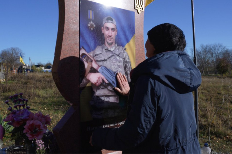 Світлана на могилі сина Едгара, який загинув на Бахмутському напрямку. Суспільне Чернівці