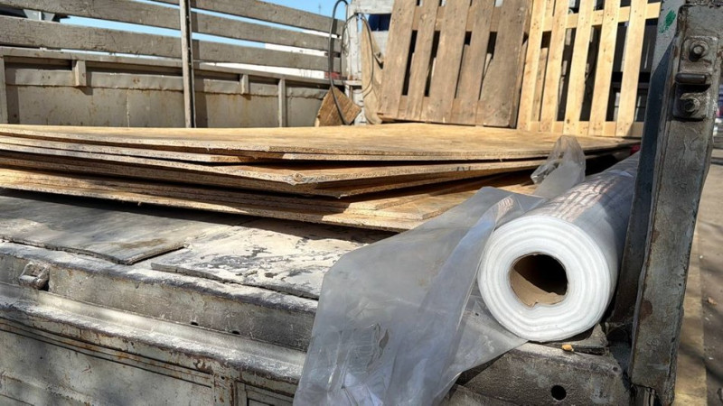 Будівельні матеріали, якими закриватимуть вибиті вікна. Суспільне Дніпро