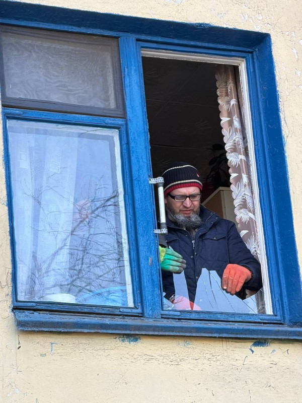 Нині комунальні служби закривають пошкоджені вікна у підʼїздах та в квартирах будинку.