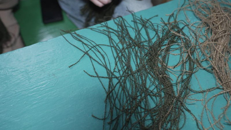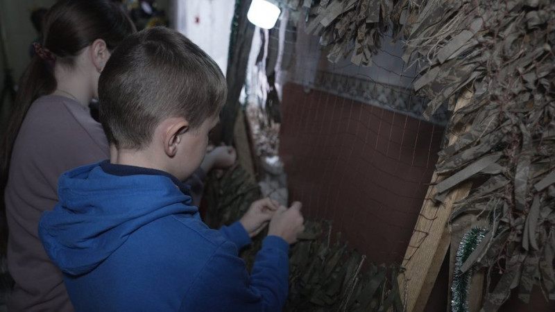 Учні торочать нитки для сітки-кікімори. Суспільне Вінниця