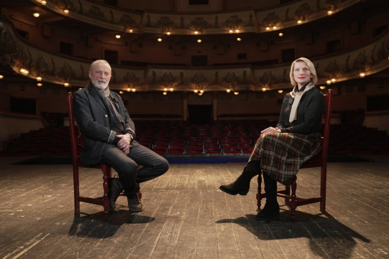 Народний артист України Олег Мосійчук і журналістка Суспільного Ірина Моргун. Суспільне Тернопіль
