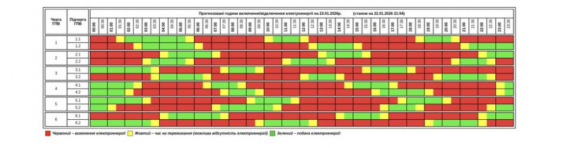 Станом на 21:16 графік відключень електроенергії має такий вигляд: