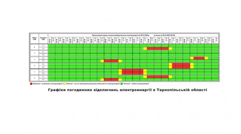 "Згідно з вказівкою НЕК "Укренерго" 30 листопада на території Тернопільської області діятиме графік погодинних відключень. Переглянути актуальний графік та дізнатися, до якої підчерги належить ваша адреса, можна на офіційному сайті "Тернопільобленерго" в розділі "Графік погодинних відключень", — йдеться у повідомленні.