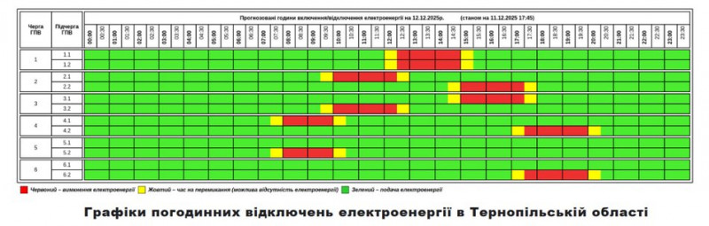 Графік відключення світла на 12 грудня. Суспільне Тернопіль