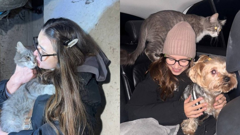 "Мія знайшлася. 9 днів я шукала її кожного дня. Я в наш підвал пару разів заходила і не бачила жодного котика там. Сьогодні мене просто тягнуло знов у підвал піти. І о 20:00 я пішла в підвал і в кінці підвалу в маленькому куточку я побачила силует киці. Просто сказала: "Мія, йди сюди". І все — Мієчка прибігла і стрибнула мені на руки. У Мії щось з лапкою, обгоріла шерсть, вона голодна і дуже налякана, тому завтра — похід до ветеринара", — написала в соцмережі Ірина Зінчук.