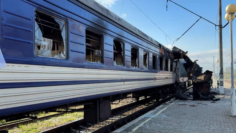 Пошкоджений потяг у Сумах, внаслідок атаки РФ. Суспільне Суми