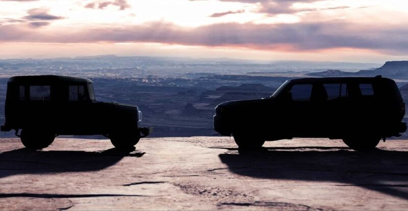 На затемнених зображеннях видно обриси двох позашляховиків – ліворуч, очевидно, оригінального Land Cruiser, а праворуч – нового. Зображення супроводжує наступний текст: «Завдяки 65-річній спадщині можна пригальмувати або заново винайти себе. Ми обрали останнє. Слідкуйте за оновленнями”.