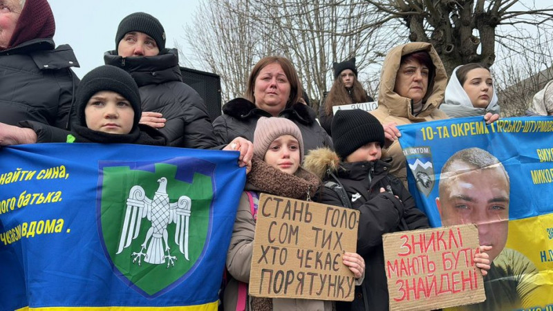 Юлія Турецька з дітьми на акції в Заставні на підтримку полонених і зниклих безвісти на війні. Суспільне Чернівці/Марія Антоняк"Мій чоловік зник безвісти 24 жовтня 2025 року. Про обставини командування майже нічого не каже. Зараз там окупована територія. Живі вони чи мертві — невідомо. Розумію, що треба чекати. Психологічно мені поки дуже складно з кимось про це говорити. Мабуть, потрібен час", — каже Юлія Турецька.