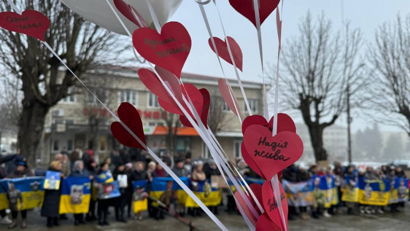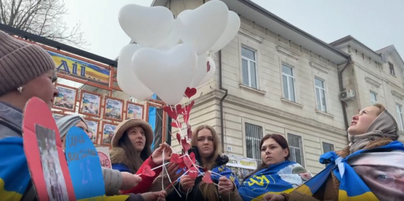 Напередодні дня Дня закоханих на акції в Заставні мами, дружини, наречені та доньки військових, які зникли на війні, відпустили в небо білі повітряні кульки, до яких прикріпили слова для близьких, яких чекають.
