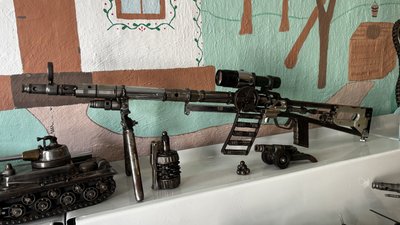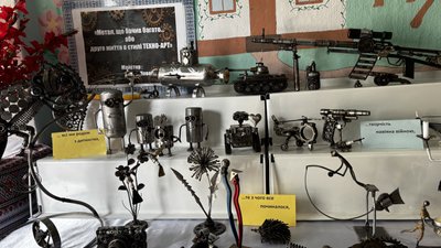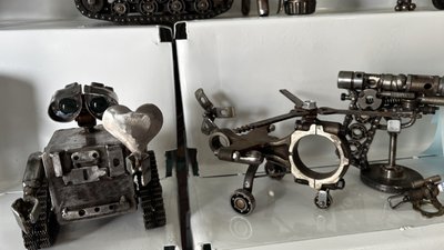 У доробку майстра – понад 50 виробів у стилі техно-арт. Частина колекції має символічну назву "Навіяно війною" – ці вироби чоловік створював під час відпусток у роки служби. Про це майстер розповів Суспільному.