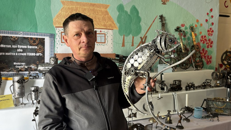 Житель села Миронівка Ямпільської територіальної громади, що на Вінниччині, ветеран російсько-української війни Сергій Новоженюк, понад сім років виготовляє колекційні вироби з металобрухту.