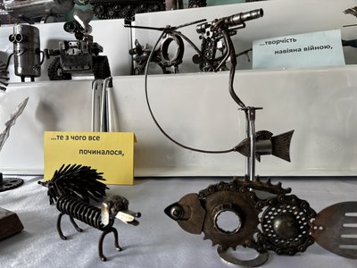 "Діти тут перемацують усе по кілька разів, розглядають, їм подобаються герої-міньйони, їжак – ніби шурупи, а ніби й їжак, інсталяції "Рибак"… Їм цікаво, чому він рухається і не падає. Вони думають, що зламали його, коли він починає рухатися. Гвинтівку всі хочуть потримати. Всі хочуть заграти на гітарі, скрипці та бандурі".