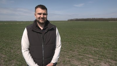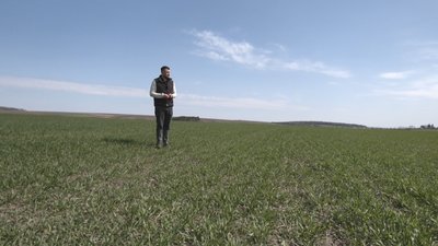 Володимир Гладун каже, в його агропідприємстві обробляють 300 гектарів землі. Чоловік оглядає озиму пшеницю, яку посіяли у вересні минулого року: