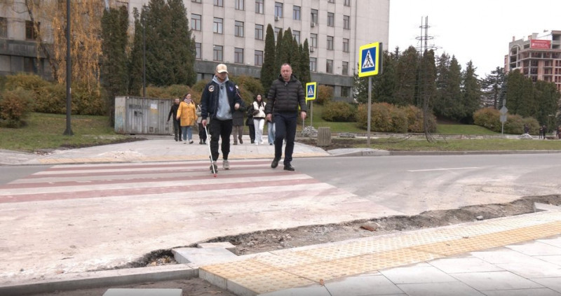 Під час тестування безбар’єрного марщруту. Суспільне Тернопіль
