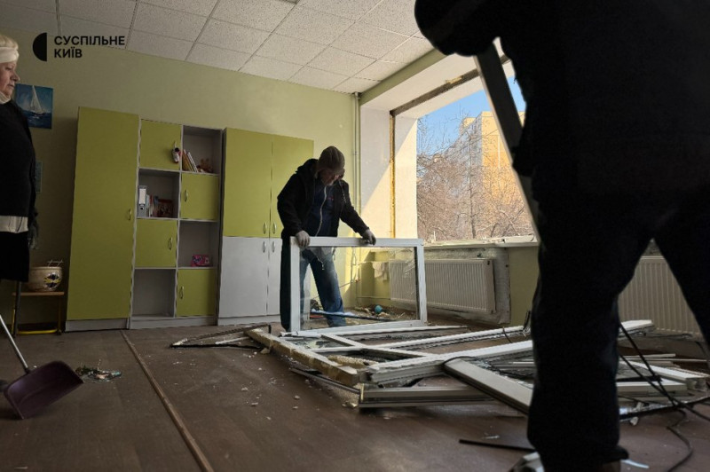 У Дніпровському районі Києва під час нічної атаки військ РФ зазнала ушкоджень будівля гімназії №182. Тут вибуховою хвилею вибило вікна на всіх трьох поверхах. Комунальники, вчителі та працівники школи працюють над усуненням наслідків атаки.