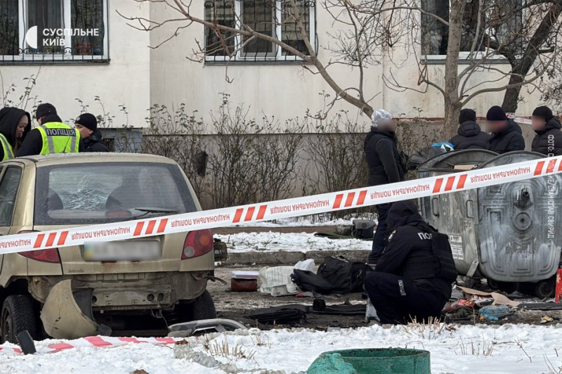 Місце вибуху позашляховика в Оболонському районі Києва, 4 січня 2026 року. Суспільне Новини/Станіслав Свирид
