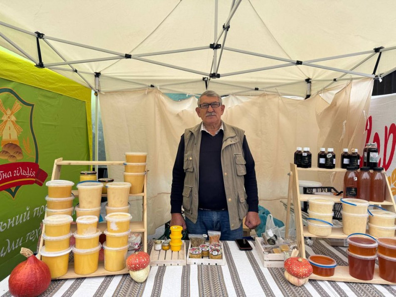 Вінничанин продає медову продукцію на Регіональному сільськогосподарському ярмарку у Вінниці. Суспільне Вінниця