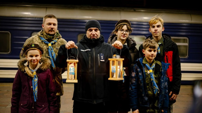Українська скаутська організація "Пласт" 7 грудня урочисто принесла до Києва Вифлеємський вогонь миру. Цього року "Укрзалізниця" вже вп’яте розвезе його країною — до громад, шкіл, лікарень та інших установ.