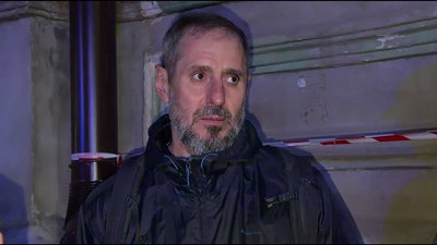 "Пролетів "шахед".Усе це сталося дуже швидко. Ми побачили, що це все близько, тому ми подумали, що треба вийти і подивитися. З собакою вийшли. З коридору було видно задимлення. У наших друзів тут є нерухомість, тому й ми вийшли, щоб подивитися", — зазанчив Володимир.