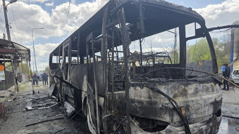 Автобус, який згорів внаслідок атаки РФ на Дніпровський район, 30 квітня 2026 року. Суспільне Дніпро