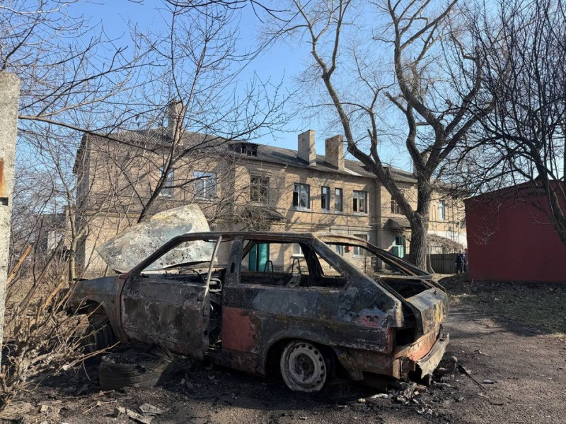 Власник автівки, яка згоріла через атаку, Олександр, каже: машина вигоріла повністю. Також в оселі вибило два вікна.