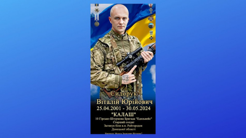 Військовому з Тернопільщини, старшому солдату Віталію Сидоруку присвоїли звання Героя України з удостоєнням ордена "Золота Зірка".