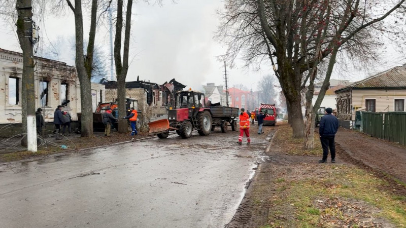 Люди усувають наслідки атаки РФ на Новгоро-Сіверський 6 грудня 2025 року. Суспільне Чернігів