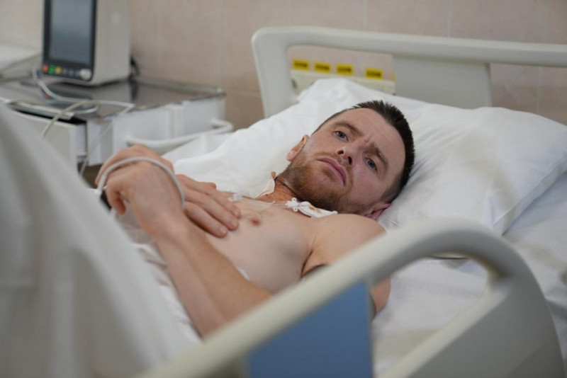 До медзакладу військового доправили у вкрай тяжкому стані. Про це розказав гендиректор лікарні Сергій. Медики перелили пораненому майже чотири літри крові та провели дві операції.