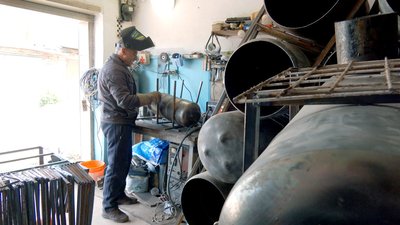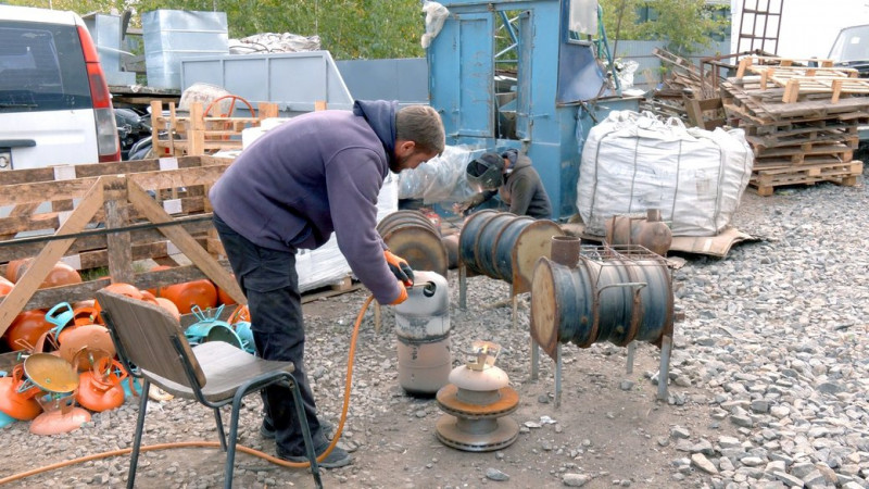 Вінничанин облаштував майстерню з виготовлення пічок для оборонців. Фото: Суспільне