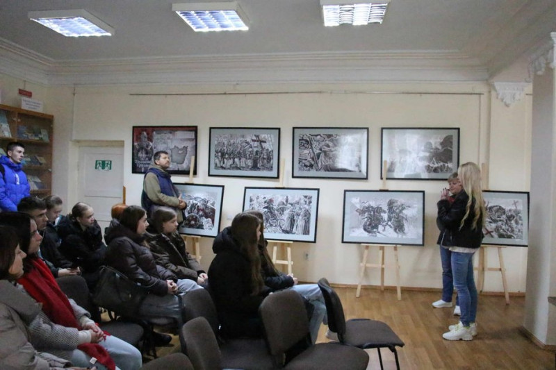 У читальному залі Тернопільської обласної наукової бібліотеки розгорнули виставку ілюстрацій Олега Кіналя до поеми Торквато Тассо "Визволення Єрусалиму".