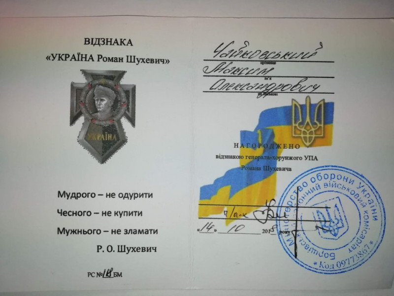 "Як волонтерив: десь коробку подати, десь комусь допомогти, якусь банку принести, бо ж малі, сильно щось робити не могли, але ми тримали бойовий дух, і тоді вже почалося волонтерство. І перша така серйозна нагорода — це орден Романа Шухевича. Мене нагородили ним у 12 років. Для мене це просто шок був".