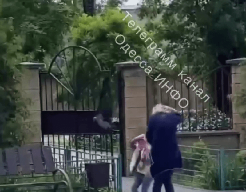 На ньому літня одеситка намагається прикрити собою дівчинку, а в цей час птах різко пікірує вниз і вдаряє жінку дзьобом у голову. Перехожі намагаються відігнати пернатого агресора, але той не дуже звертає на це увагу. За словами очевидців, потерпілій пробито голову. Аналогічну травму отримав чоловік в іншій частині Одеси – відповідне фото також потрапило до соцмережі.