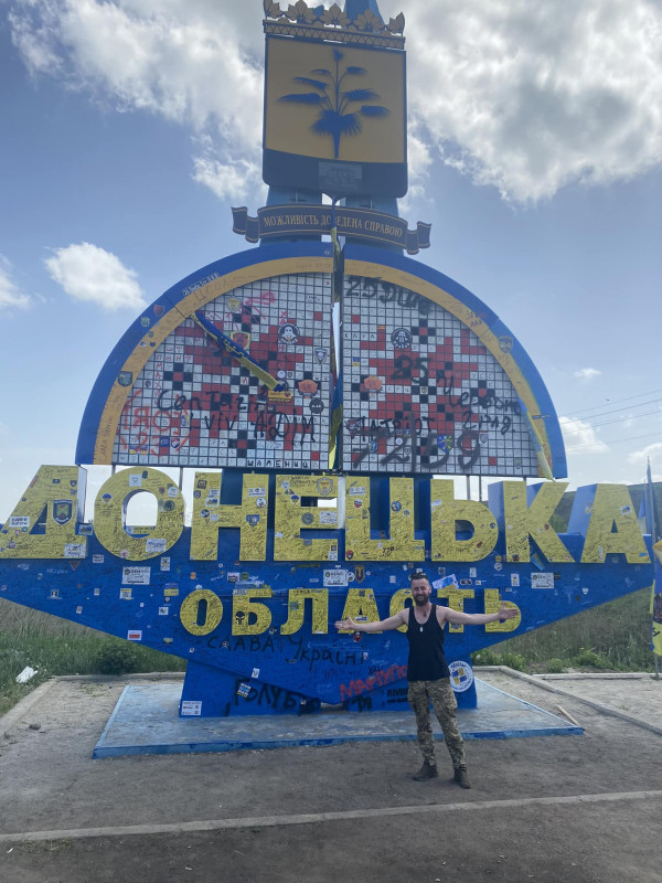 Ігор Нажига біля стели «Донецька область». Ігор Нажига