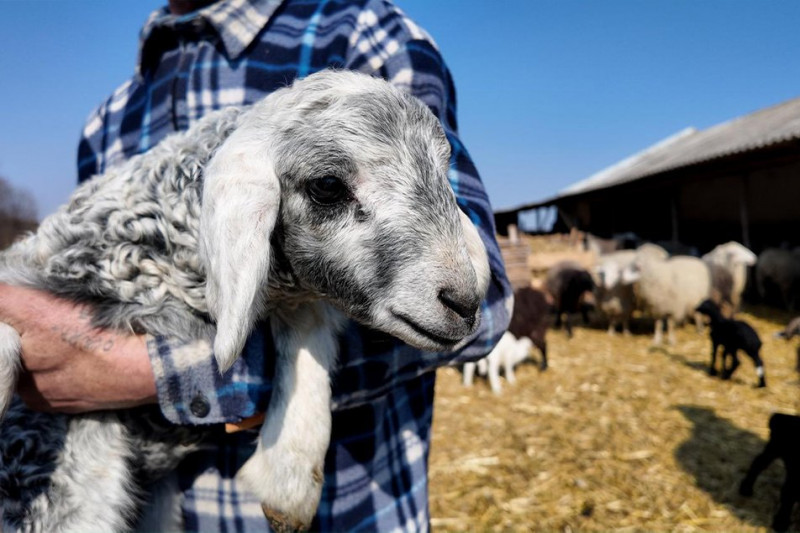 Вівця на руках в одного із працівників ферми Мамалигівської громади. Суспільне Чернівці/Андрій Романцов