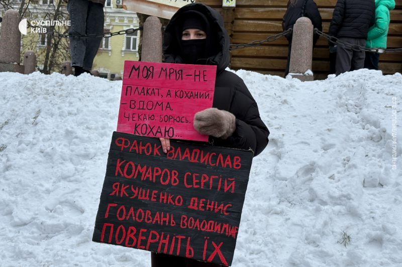 Акція на підтримку військовополонених, біля ст.м. «Золоті ворота», Київ, 4 січня 2026 року Суспільне/Дар’я Григоренко