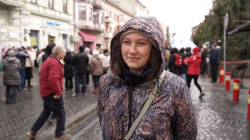 "Ми розписували писанку, яка називається "Червона рута". Вона тут стоїть, і ми прийшли на відкриття. Ми вклали поєднання двох традицій – це писанкарство і килимарство, так ми вирішили. Я вважаю, що такі заходи потрібні, тому що час дуже складний і сумний", – каже Волошина.
