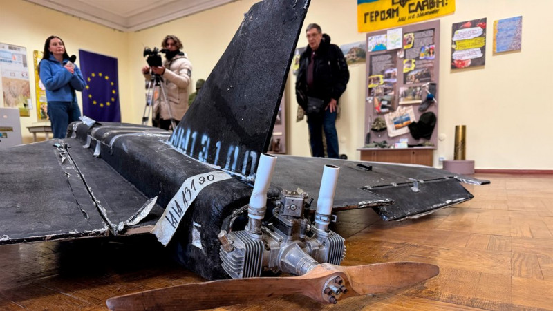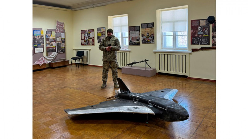 Військовий та збитий російський безпілотник, який передали до Чернігівського обласного історичного музею імені Василя Тарновського у Чернігові 10 лютого 2026 року. Суспільне Чернігів