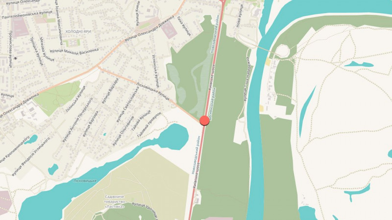 Перехрестя проспекту Миру та вулиці Лісковицької на мапі. openstreetmap.org